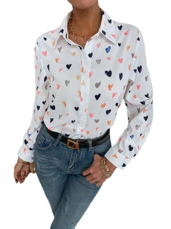 Printed Long Sleeve Butterfly Printing Lapel Shirt